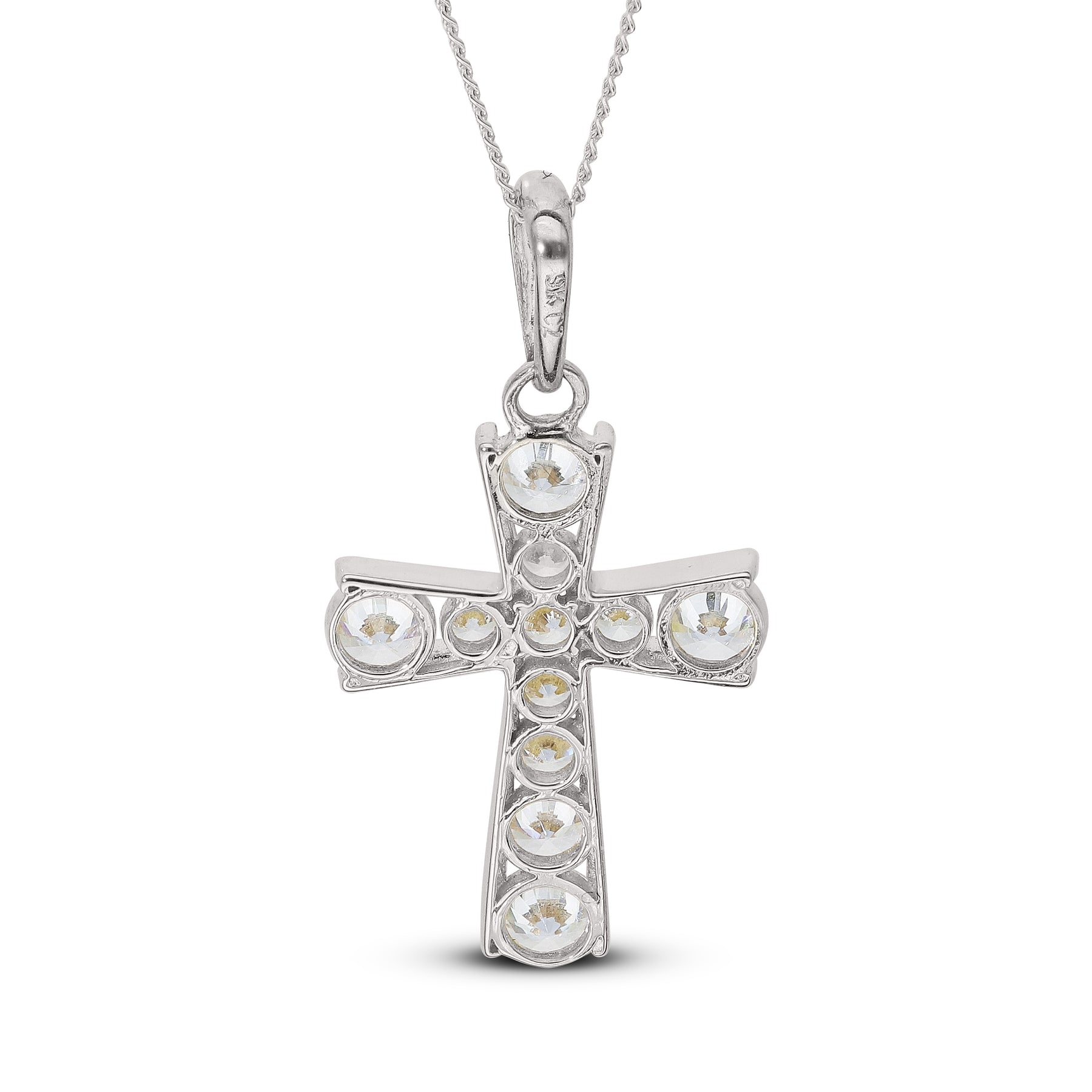 Gracefully crafted in 9ct white gold, this delicate cross features a sleek, shiny finish and is adorned with sparkling white zirconia stones. A timeless piece, perfect for everyday elegance or a meaningful gift.