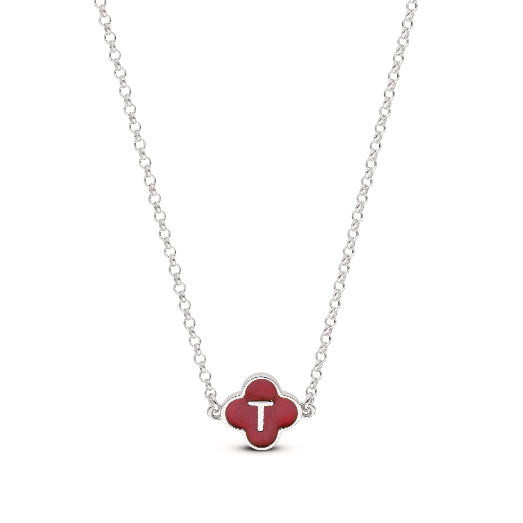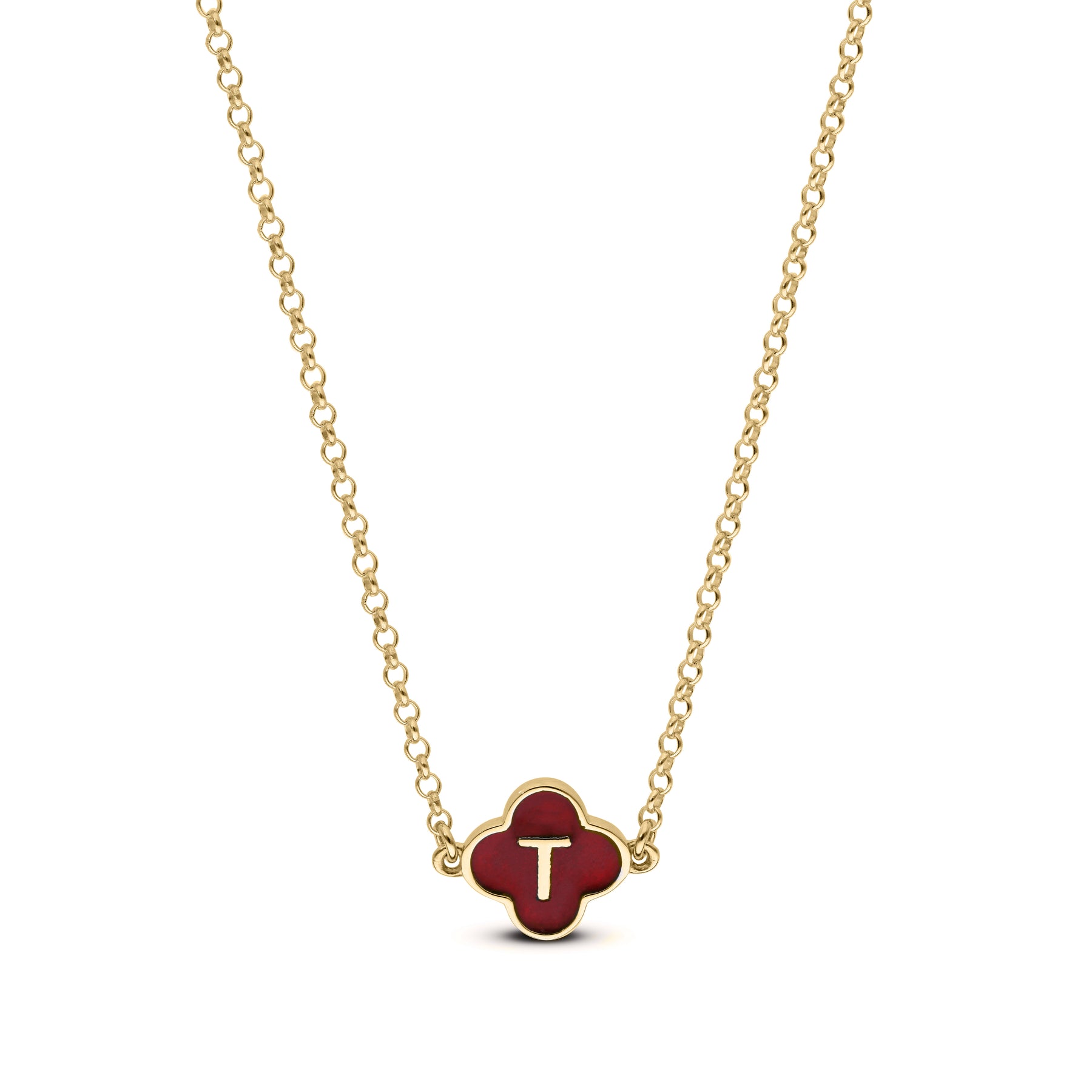 A sleek, gold-plated necklace featuring a clover-shaped enamel pendant customised with any initial you choose. Stylish, personal, and perfect for everyday wear or gifting.